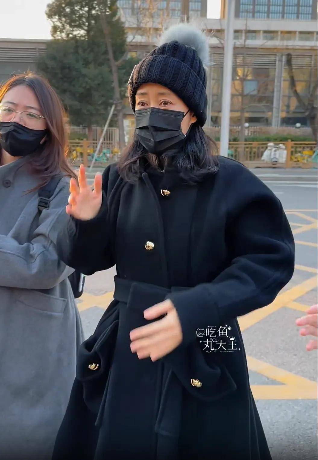 同年龄段女星里,刘敏涛也穿了大衣,还是比较沉稳的黑色,不过她戴了一顶毛绒帽子,不仅保暖,还多了几分可爱和青春气息。