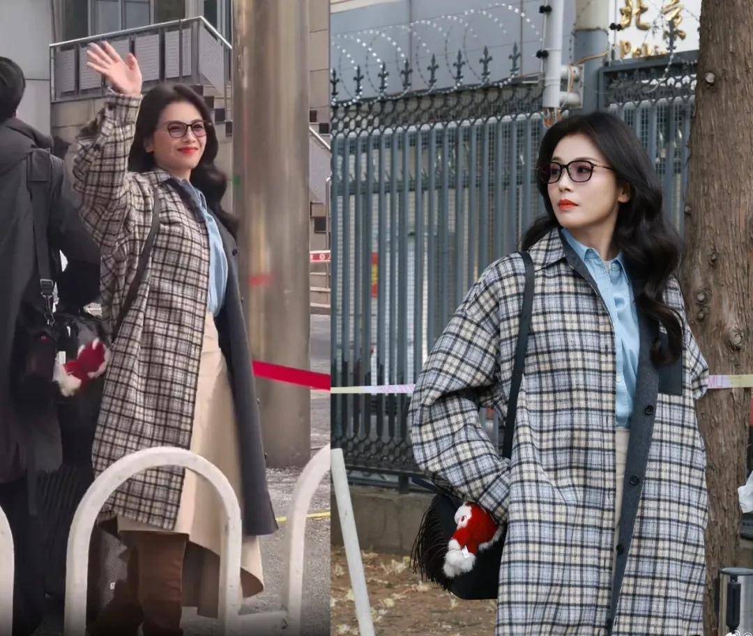 刘涛上班时穿了一身格子大衣,配上墨镜,气质没得说,松弛感满满。
