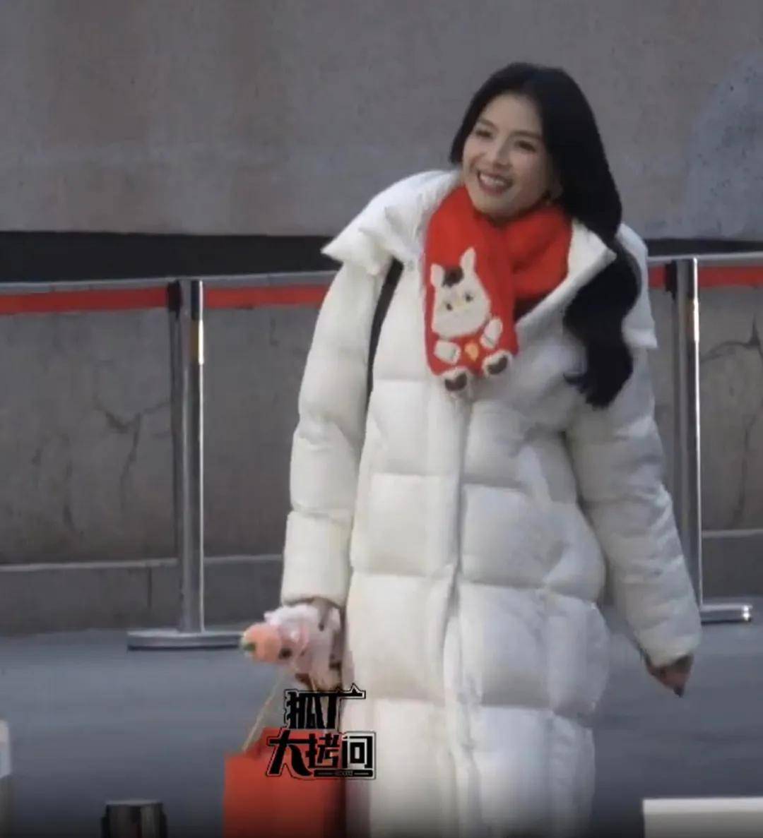 下班时刘涛几乎完全换了一套造型,雪白的长款羽绒服,用红色的小马围巾点缀,手里还提着红色包装的礼盒,看起来喜庆又应景,一股回娘家的气息扑面而来。