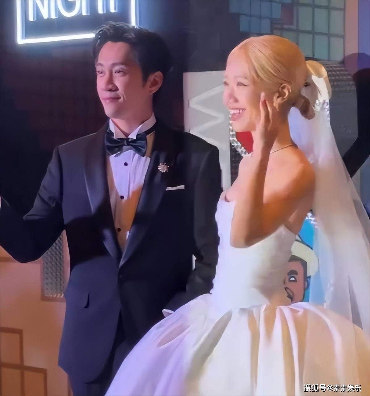 婚礼开始,陈汉典和lulu是跳着舞蹈入场,夫妻一起相视而笑,在交换誓言的时候,两人也是激动得落泪。