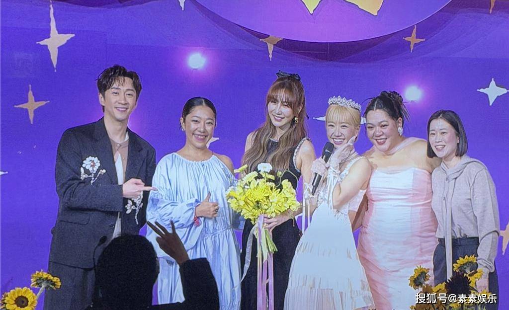 在婚礼进入扔捧花的环节,在台上的曾莞婷拿到了捧花,lulu则是调皮的表示替婷开心,“希望有人好好照顾莞婷姐。”
