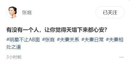 觉得张庭除了父母以外最爱的就是他了,只要有张庭在他就安心,张庭是一个非常自信的人,不愧是当年做微商的人,永远都正能量一样,张庭都年过半百了,但一点看不出岁月感,还是和年轻的时候一样,笑起来很甜,两个儿女长大了也非常有出息。