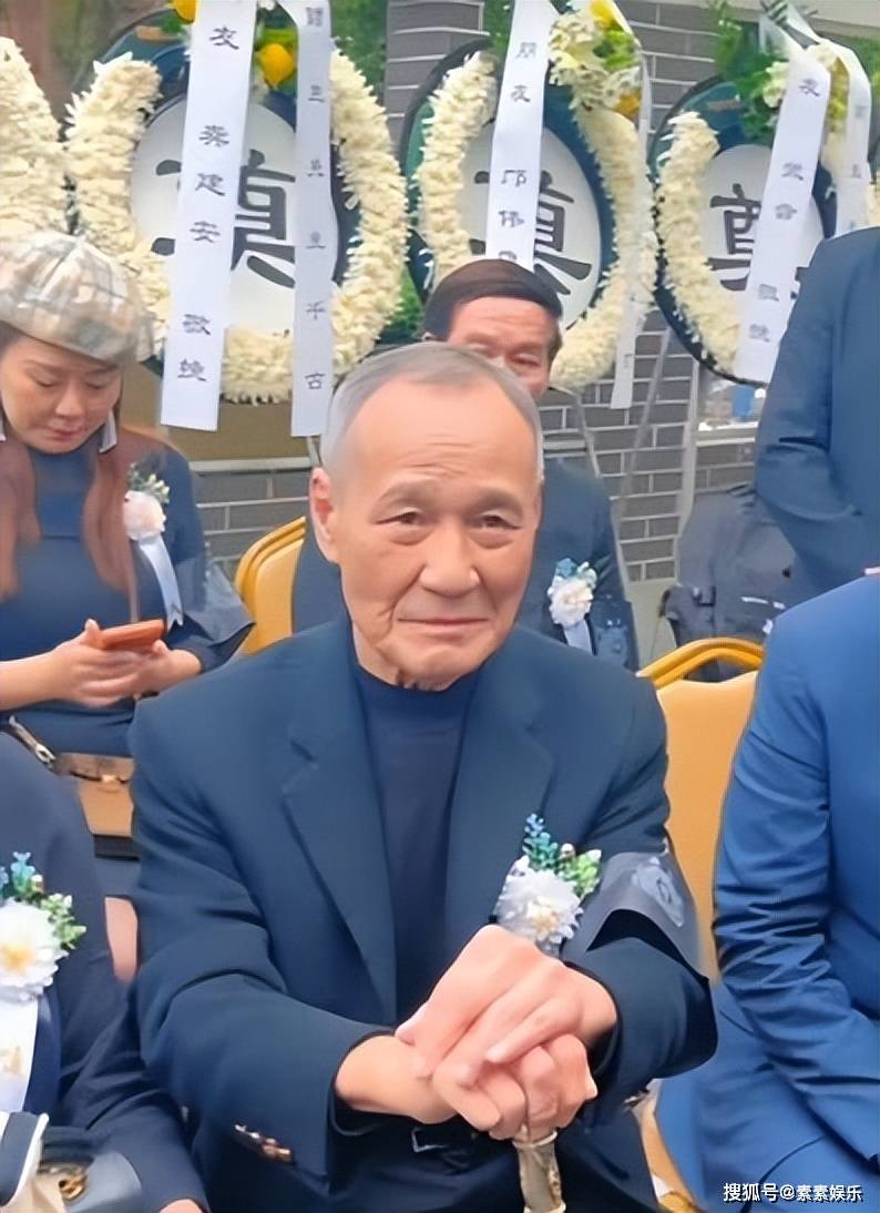 老友陈慧敏拄着拐杖出现在送别人群之中,他被亲人搀扶着进入灵堂,神情尽显哀伤。