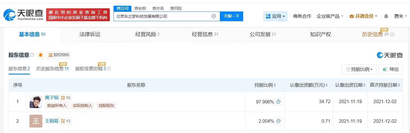 企查查APP显示,近日,北京车之梦科技发展有限公司新增两则欠税公告信息,欠税余额总计14.1万余元,欠税税种包括增值税、印花税,发布单位为国家税务总局北京市朝阳区税务局。企查查信息显示,该公司成立于2004年8月,注册资本35.43万元,黄子韬持股97%。