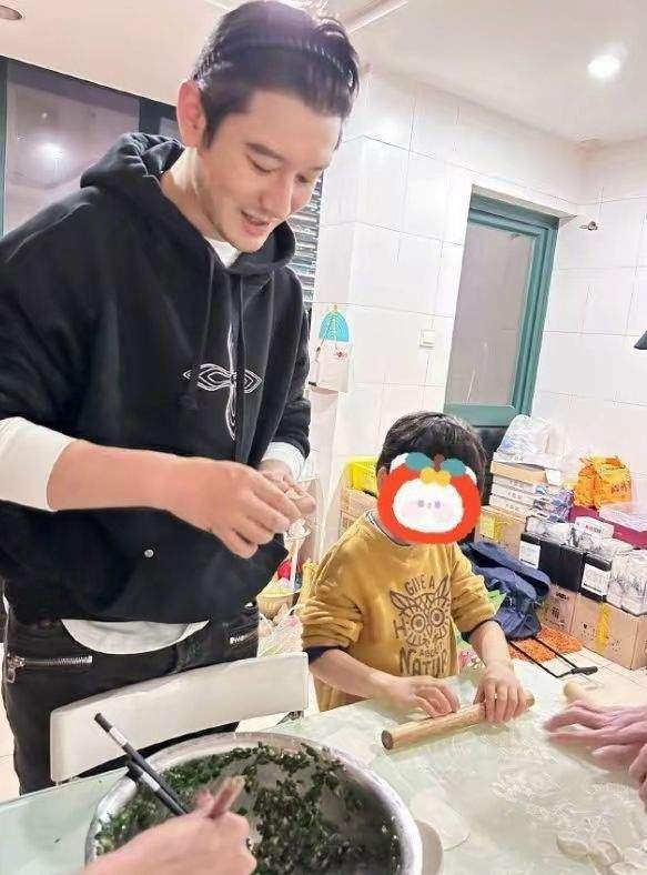 冬至的时候,黄晓明带着小海绵一同下厨包饺子,父子俩满脸笑意,动作有模有样的,画面十分治愈。