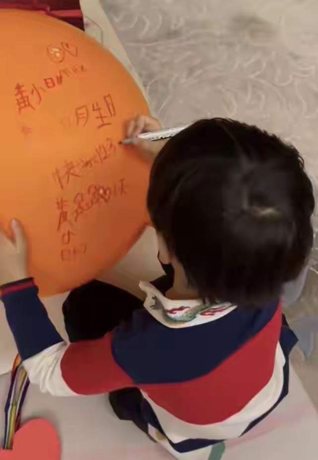 当然,小海绵也会亲手为爸爸准备生日礼物,在气球上画着和爸爸牵手的有爱画面,歪歪扭扭的写下生日祝福,字里行间不难看出,父子俩的感情依旧十分深厚。