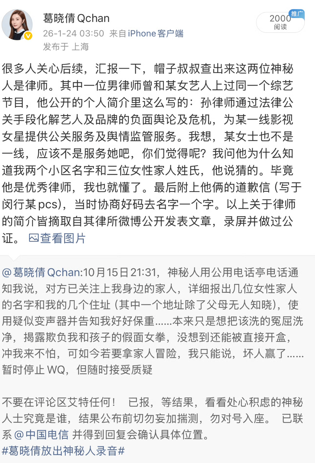 2024年10月,葛晓倩接到匿名变声电话,对方精准报出她的两个住址(连父母住的隐私地址都知道),还报出三位女性家人的名字,只留下一句“保重”就挂断。葛晓倩吓得直接报警!2026年1月,警方调查结果出炉:涉事者是两名律师,孙姓和范姓!更搞笑的是,律师道歉信里说信息是“猜的”,比如“猜中上海小区名”。网友吐槽:“这猜谜技术,不去买彩票可惜了!”