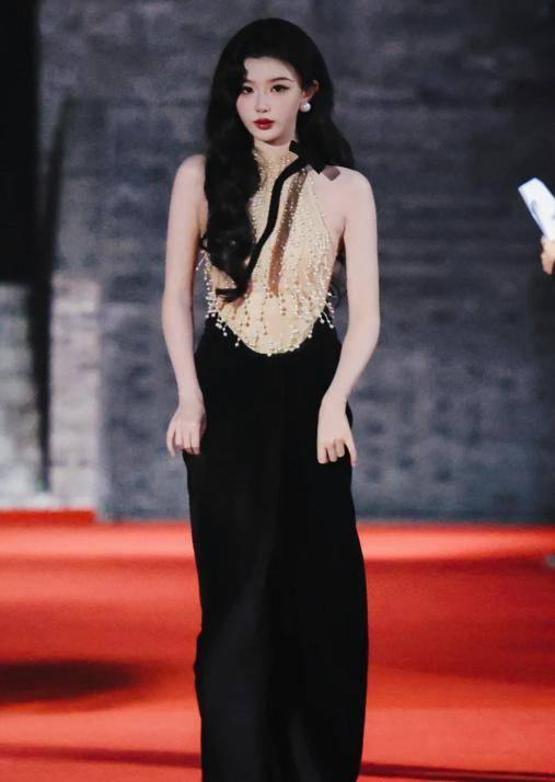 身形上被网友调侃“好壮”,但这种壮是匀称的健康感,肩背挺拔不佝偻,骨架舒展自带气场,完全撑得起华丽的礼服版型。