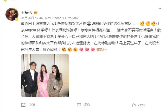 2026年1月26日,导演王岳伦突然发文辟谣,点名驳斥“王诗龄休学”和“前妻李湘涉缅北诈骗”两大传言,称其荒诞离谱,呼吁公众停止传谣,但回避了李湘账号被封禁