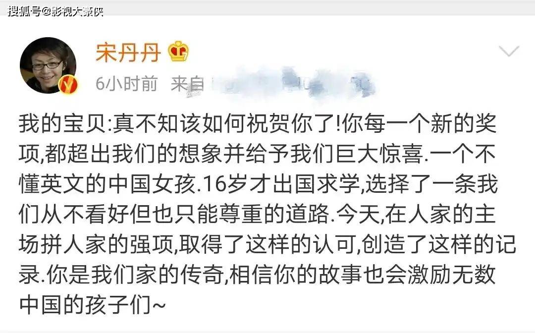 圈内的很多明星也得知了这个消息,章子怡更是发表祝贺,宋丹丹也在为这个继女感到骄傲,这是她家的孩子,更是经她一手培养的。