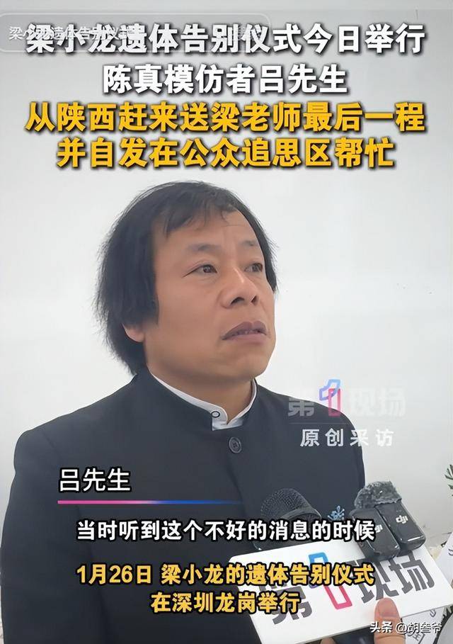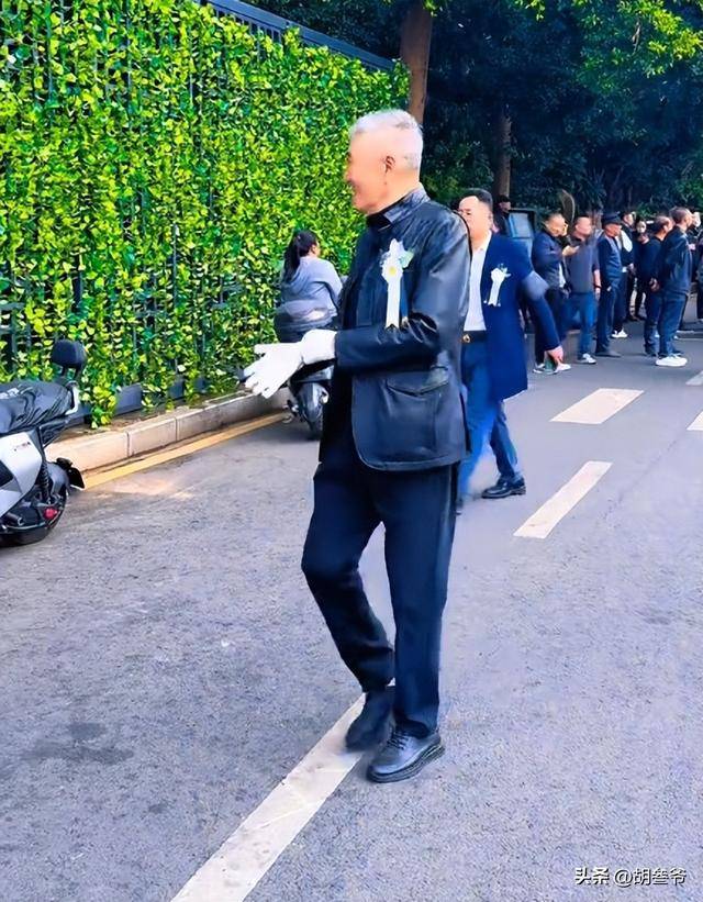 在梁小龙的追悼会上,林威身穿一身黑亮相还送别梁小龙。