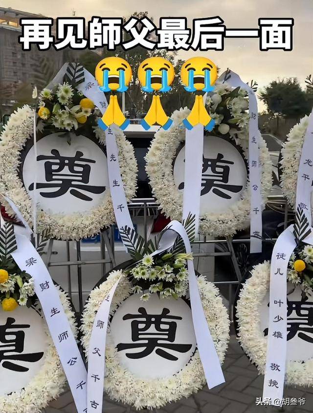 灵堂里,花圈堆得满满当当。最显眼的,是那些落款写着“徒儿敬赠”的花圈。