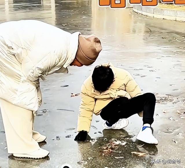 她在冰面上时刻牵着奶奶的手,展现了细心温柔的一面。