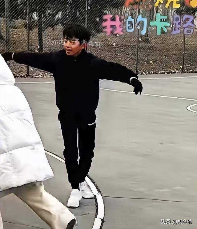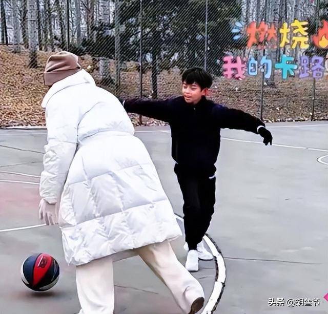 而箖箖则活泼好动,对地面上的冰碴子充满了好奇,不时用手去拍打,还和奶奶一起打篮球,小小的身影在球场上活力四射。