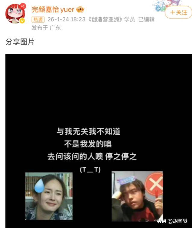 完颜嘉怡一开始回应 “不是我的错凭什么承担”,被网友解读成默认关系。