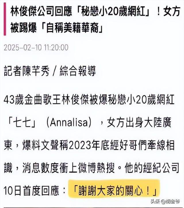 林俊杰的经纪公司赶紧出来声明,说林俊杰和七七是2024年中才开始交往的,不存在劈腿的情况。