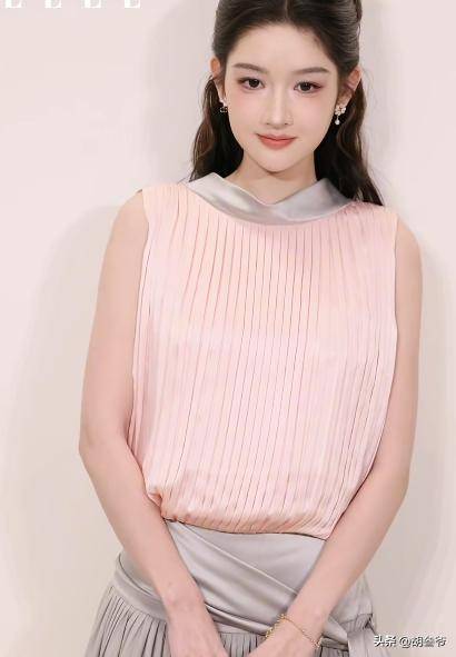 再配上她标志性的梨涡甜笑,那种 “外冷内暖” 的气质,真的让人一眼就记住。