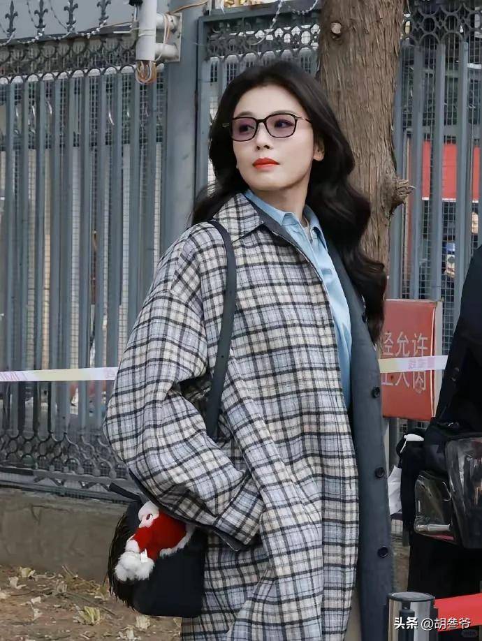 LOEWE格纹大衣搭配金丝眼镜的复古知性风被赞“梦回《欢乐颂》安迪”。