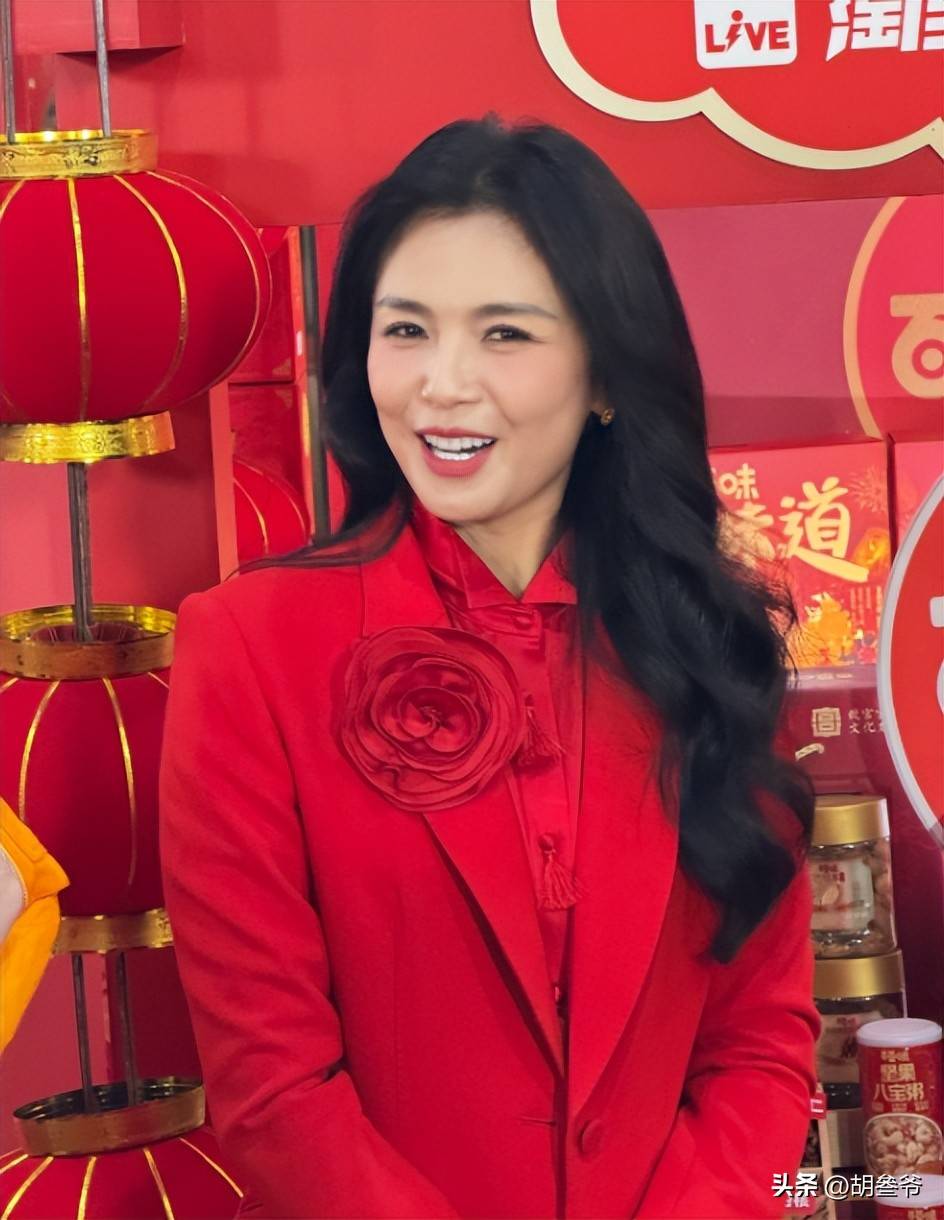 当天直播时,刘涛非常配合的身穿一整套大红色西装,发型还是大波浪卷发,给人一种穿越到十几年前的既视感。