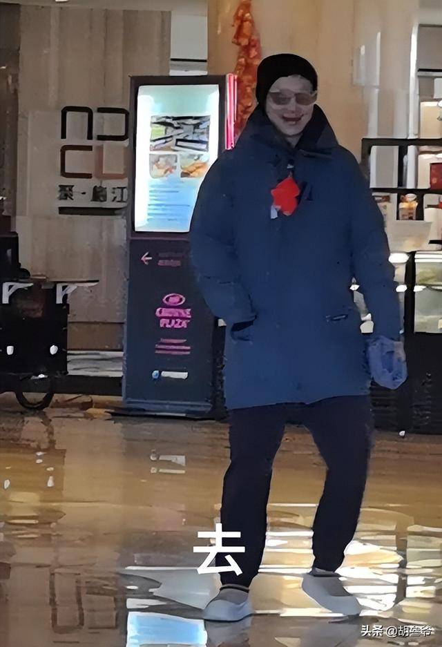 高云翔穿了件蓝色长款羽绒服,胸前别着个红色挂饰,下身居然搭了条黑色短裤,186 的个头配上精壮身材,哪怕多年没拍戏,男人味还是很足。