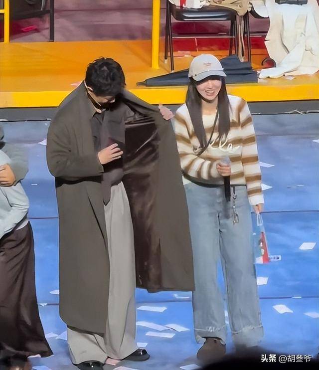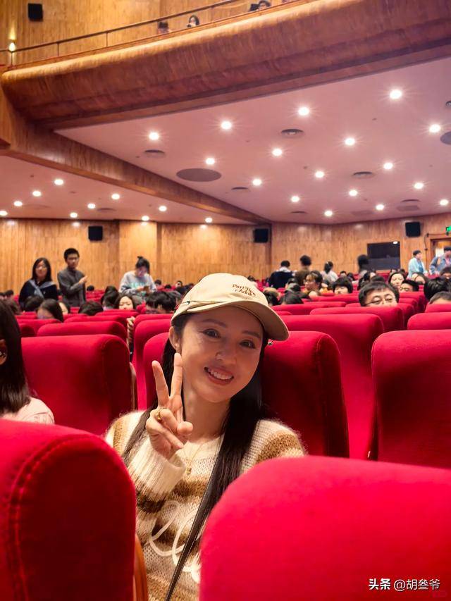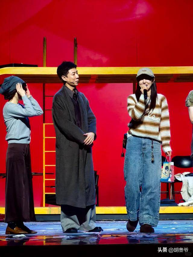 她戴着帽子,穿着休闲装,上台说了几句祝福的话,笑得很开心。