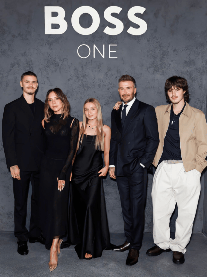 贝克汉姆拍新的全家福!贝嫂带俩准儿媳出场,被问到大布一脸冷漠,感觉贝克汉姆的基因都被贝嫂拉低了。