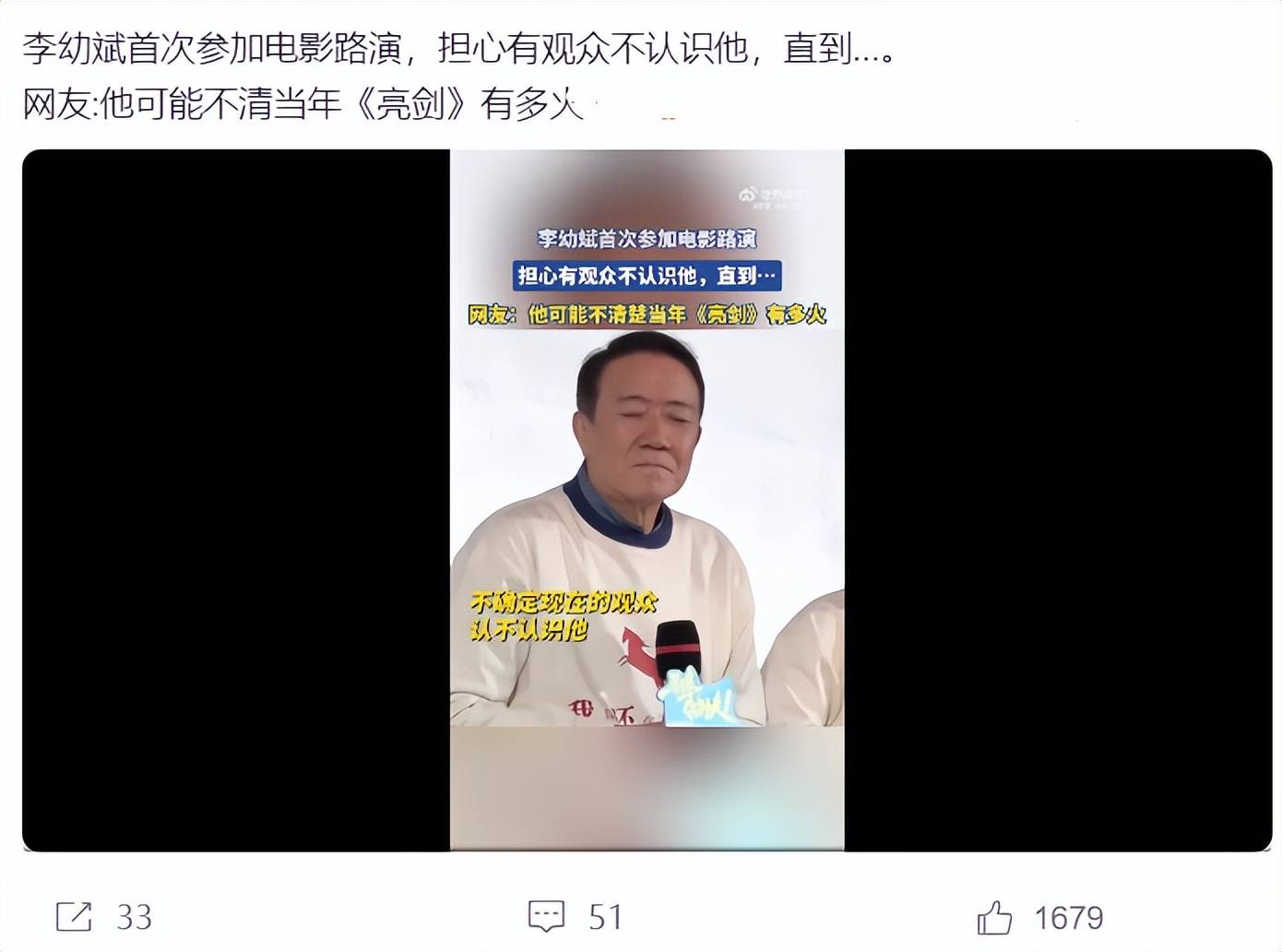 看到现场的粉丝时,李幼斌是非常紧张的,因为这是他首次参加电影路演,非常担心现场的粉丝不认识他,可是在互动的过程中,粉丝们直接玩起《亮剑》的梗,而李幼斌也非常配合,这样的情况出现,网友们忍不住调侃:他可能不知道当年《亮剑》有多火。