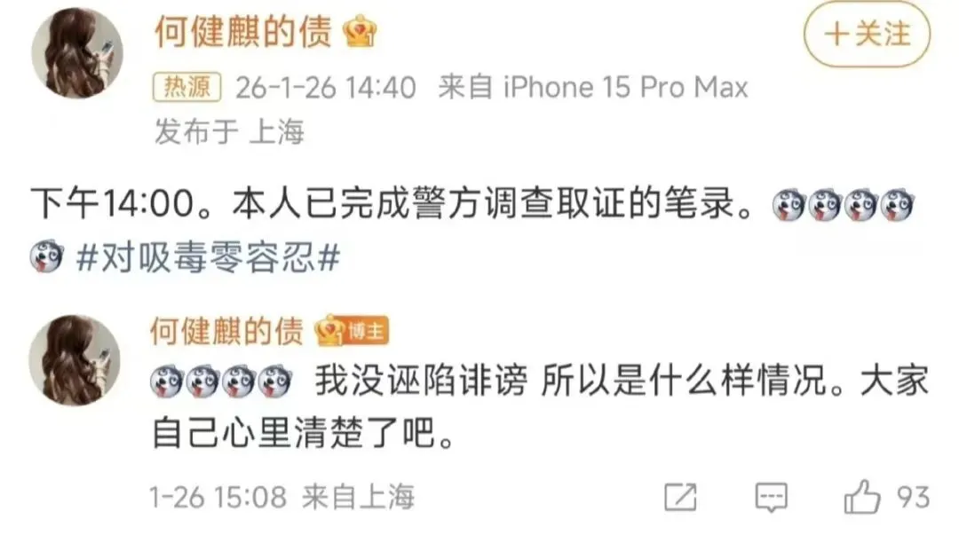 目前最新进展:在何健麒方否认后,26日下午,网友“何健麒的债”再发文,表示已完成警方调查取证的笔录,还称自己没有诬陷诽谤。这是又要反转了吗?