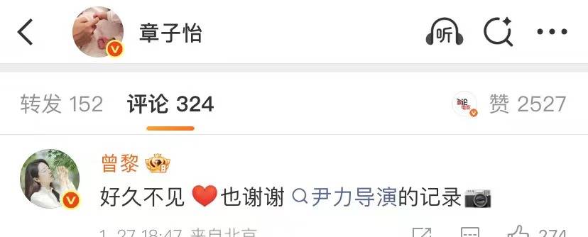 曾黎也回应了章子怡,好久不见,感谢尹力导演。