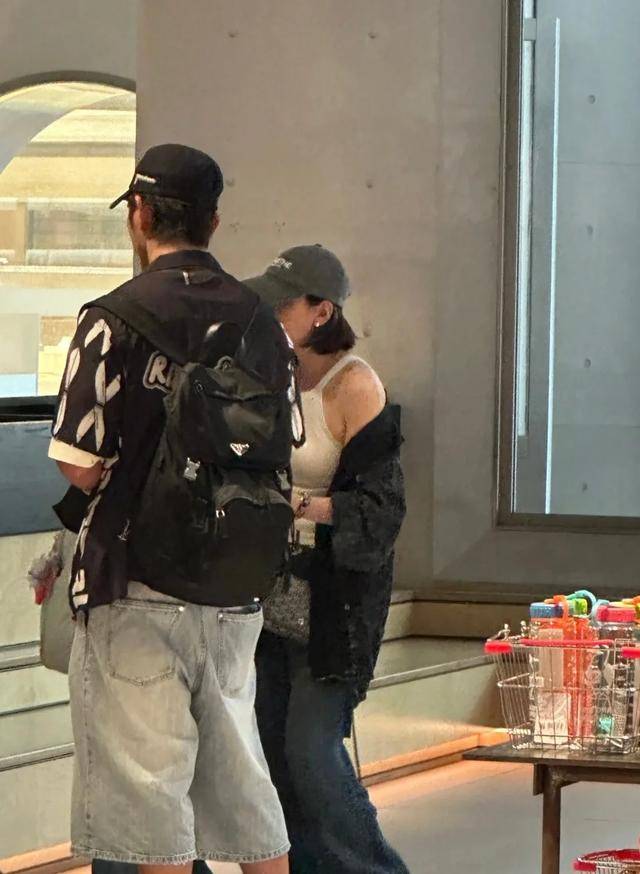 两人都穿黑色皮衣,贾静雯的是收腰款,修杰楷的更硬朗些。头上都压着同色棒球帽,恨不得把半张脸藏在帽檐下。