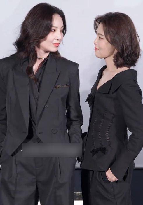 辛芷蕾身着一袭黑色西装裙,剪裁利落的款式本应凸显职场气场,裙摆长度刚好露出纤细的小腿线条。