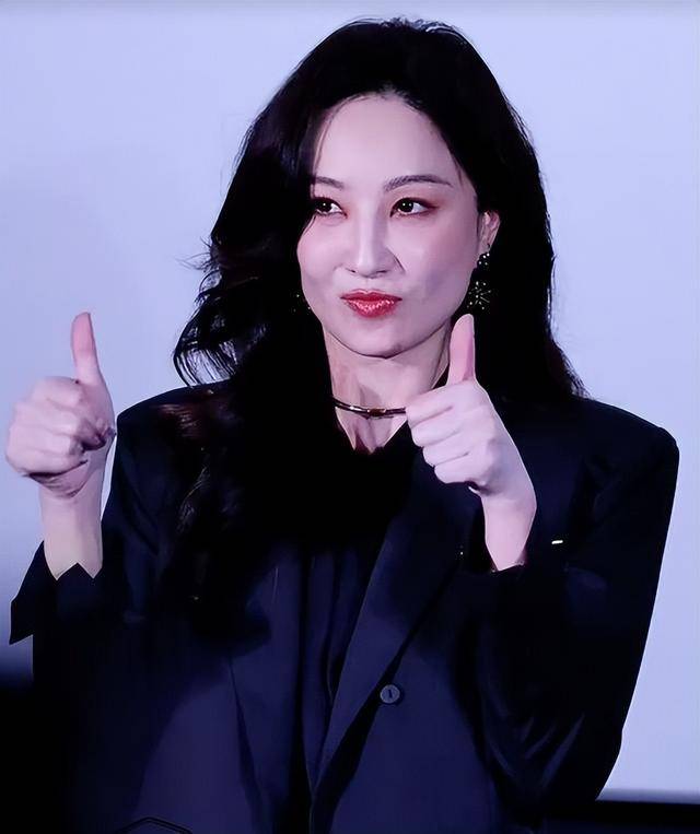 40+的她脸部线条紧致流畅,没有丝毫松弛感,妆容精致却不厚重,眉峰微微上扬自带英气,笑起来时眼神明亮,完全看不出岁月痕迹。