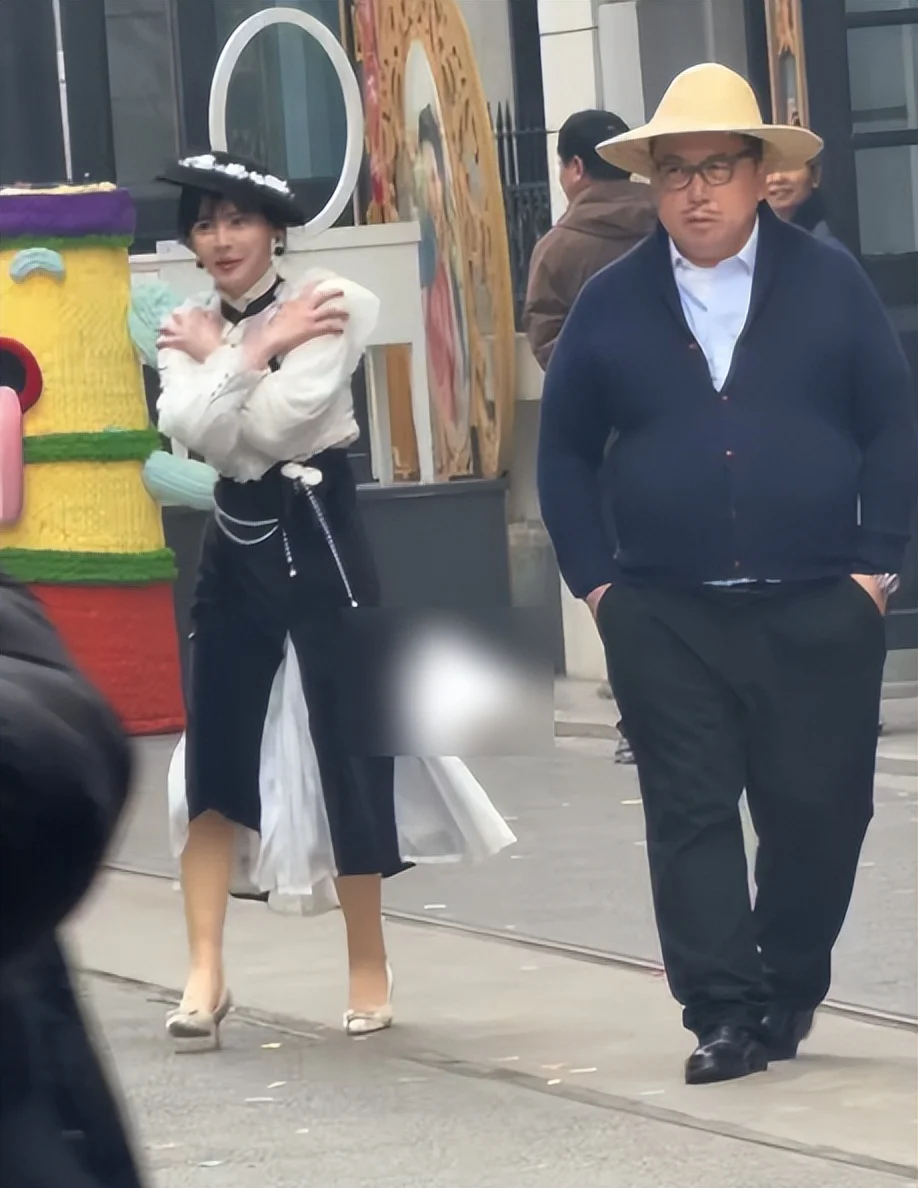 从现场曝光的照片来看,当天的王晶穿着一身深色紧身戏服,领口紧紧贴在脖子上,腹部区域被撑得轮廓分明,视觉冲击力十足。