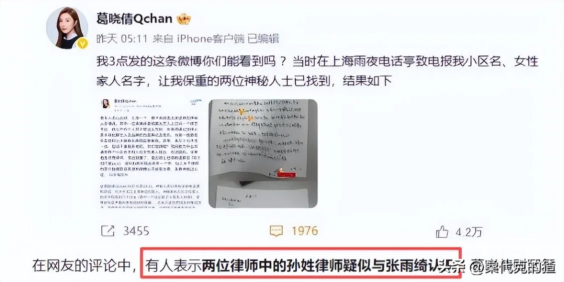 警方查了一年多,发现打电话的是两名律师,其中一人曾与张雨绮合作处理舆情,疑似受其指使。
