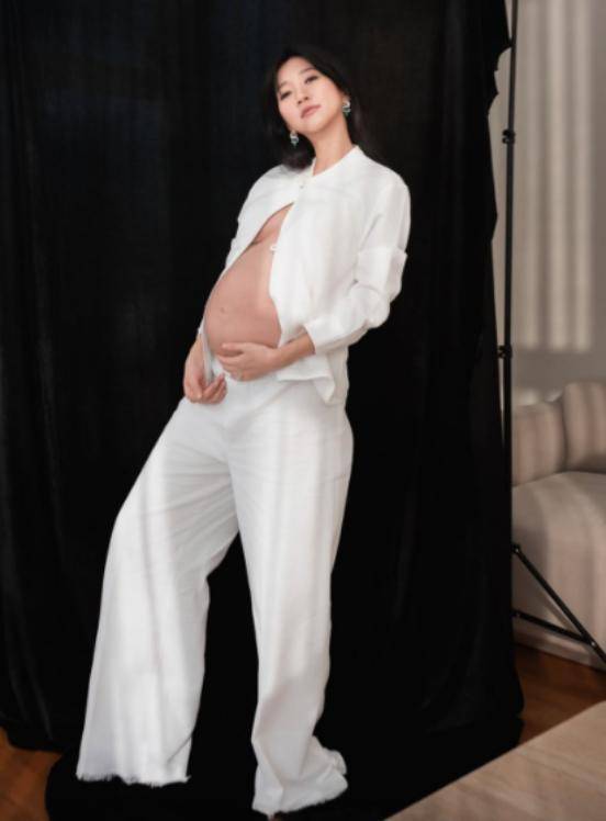 其中郑瑶的一张照片,备受网民热议。照片中,郑瑶穿着一身白色套装,最吸引网民眼球的是,郑瑶的上半身衬衫,仅仅扣上最上面的扣子,整个孕肚呈现在人前。
