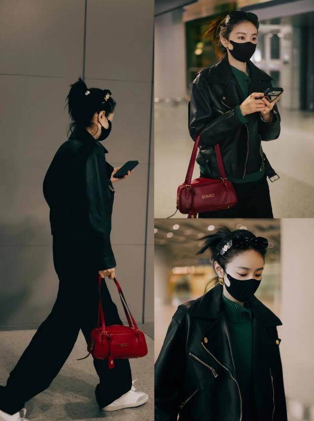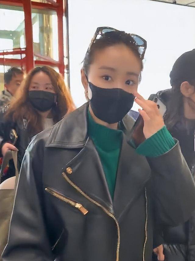那件黑色皮衣剪裁利落得很,肩部做了垫肩设计,硬挺的线条把她整个人的精气神都提上去了。
