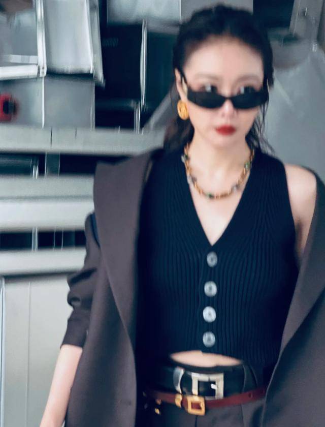 再加上下身是条黑色阔腿裤,裤腿垂得笔直,走起路来带风,每一步都踩着那种“老娘最美”的节奏。