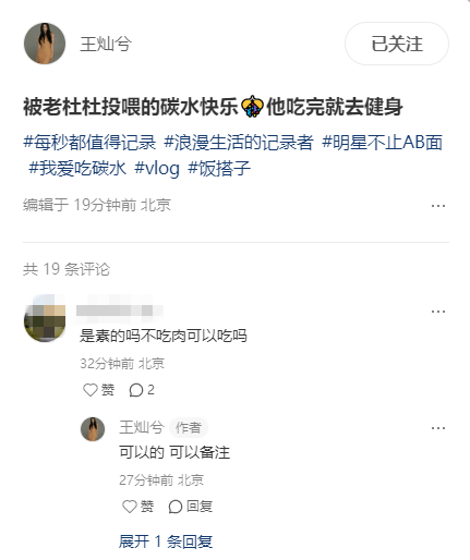 在1月28日,王灿又晒出老公带自己去增肥的视频了,不过两人吃的其实挺素的,杜淳吃一碗茄丁拌面,王灿吃的是炸酱面,吃之前杜淳都先给拌好,非常的贴心,王灿还尝了一口老公的切茄丁面还不错,不过更期待自己的炸酱面。