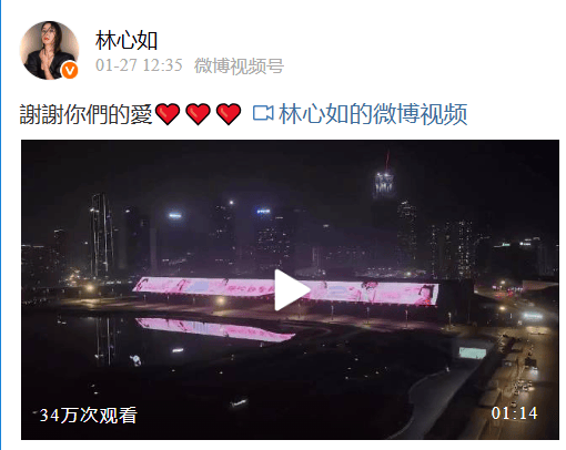 1月27日,林心如在社交平台上晒出自己50岁的生日大排场,粉丝做400米的横幅来应援真是好奢华了,毕竟人生只有一个50岁还是要大过一下的,林心如还配文:谢谢你们的爱,LED放映带上都是她出演的作品。