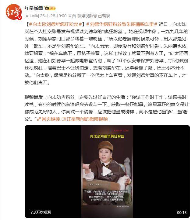 据1月28日报道,向太陈岚在社交平台的一段爆料,直接把时间拉回了上世纪90年代刘德华被狂热粉丝“围堵”的现场。她透露,当年刘德华家门口常年被粉丝“重兵把守”,导致其妻子朱丽倩的日常生活宛如“谍战片”——出行不仅不能与刘德华同车,甚至需要蜷缩在另一辆车的座位底下,用毛毯从头盖到脚,才能躲过粉丝的眼睛。这番描述瞬间让“病态追星”这个老话题,再次被推上了热议焦点。