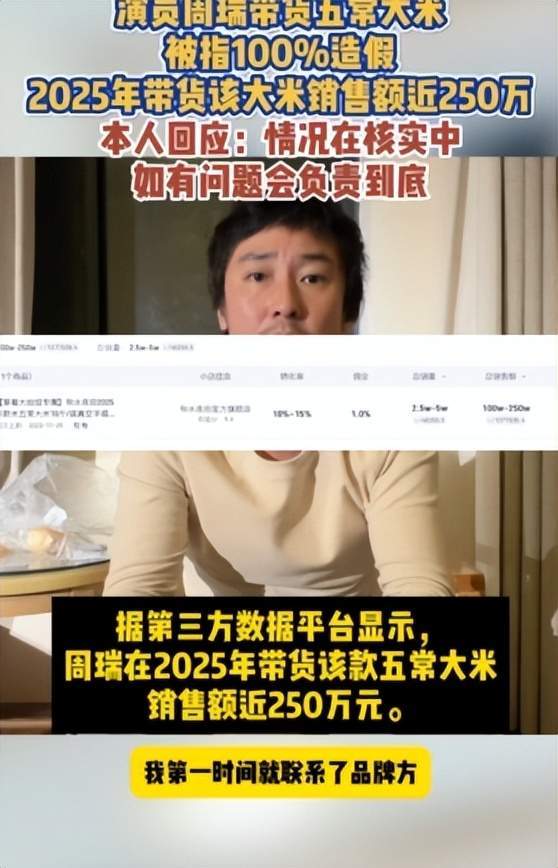 【一】“我演的戏没人看,我卖的米却爆了?”近日,演员周瑞针对自己售卖的五常大米引发的争议发布回应了。 他表示刚在剧组拍完戏,就看到网上有媒体称其售卖的五常大米