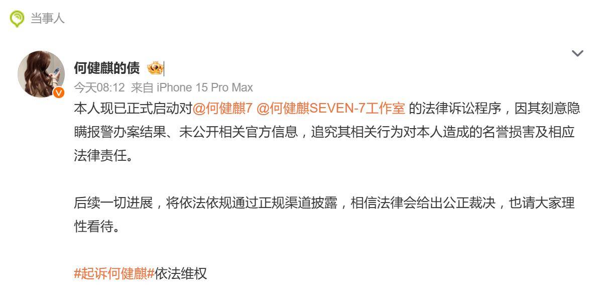 娱乐圈的“自证清白”大戏,这次可能真要法庭上见真章了。1月29日,短剧顶流男演员何健麒的前女友朱女士(微博账号“何健麒的债”)一纸声明,宣布已正式启动对何健麒及其工作室的法律诉讼程序,直指要追究对方对其造成的名誉损害。这场从“涉毒举报”发展到“报警回执”再升级到“对簿公堂”的连环瓜,让看客们直呼剧情过于曲折。