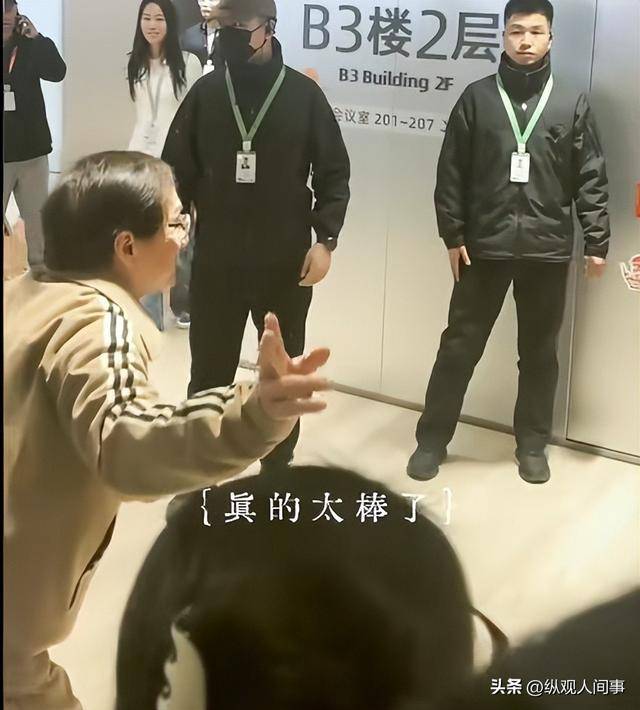 刚出电梯的他没让保镖护着自己 “突围”,反倒主动伸手问一个幸运女生要过来手机,熟练得像自家孩子递玩具似的,递给工作人员就喊: