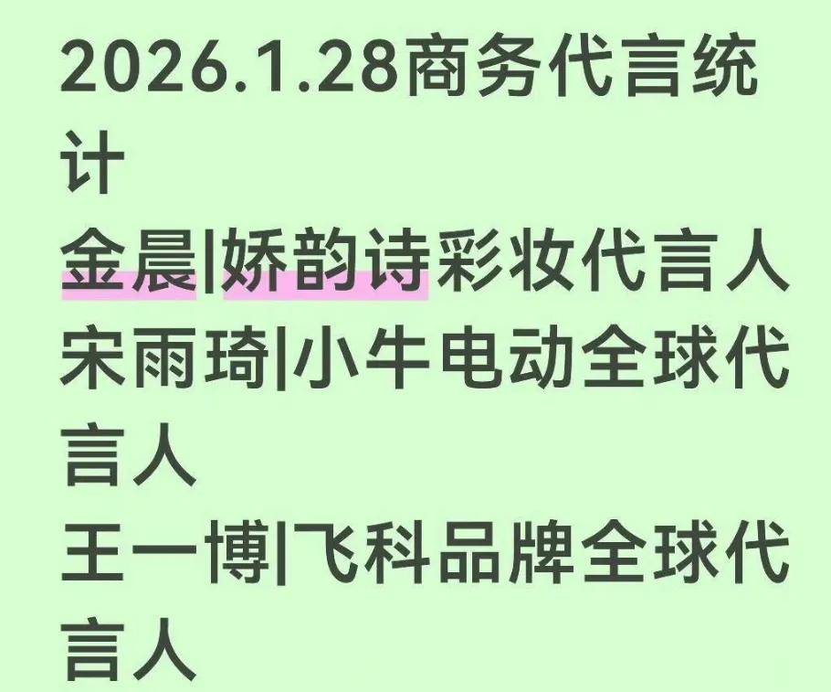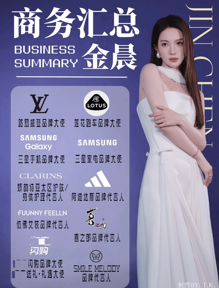 就在狗仔爆料前一天,金晨拿到了彩妆新代言,就金晨的商务资源来说,妥妥的一线女星,虽然都是大使称号,但代言质量相当不错,有车代、奢代、手机代言、平台代言、美妆代言、女装代言等等等等,算上新官宣代言,加起来有十多个,真是闷声赚大钱啊!