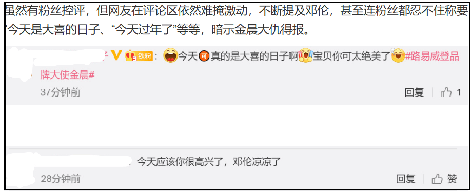 说起来,邓某翻车当天,金晨还发了一条代言宣传动态,因为二人交往过程并不愉快,网友还给金晨留言,恭喜她大仇得报,结果不过几年时间,金晨眼见着就要走上前男友同款封杀路了。