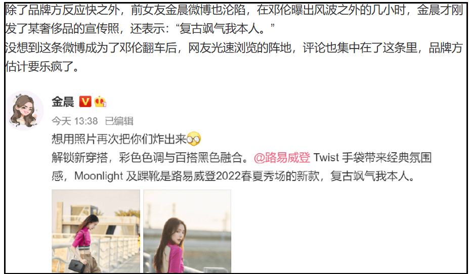 金晨如今的境遇,让人忍不住联想到了她的前男友邓某。
