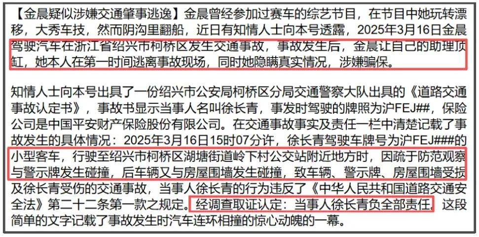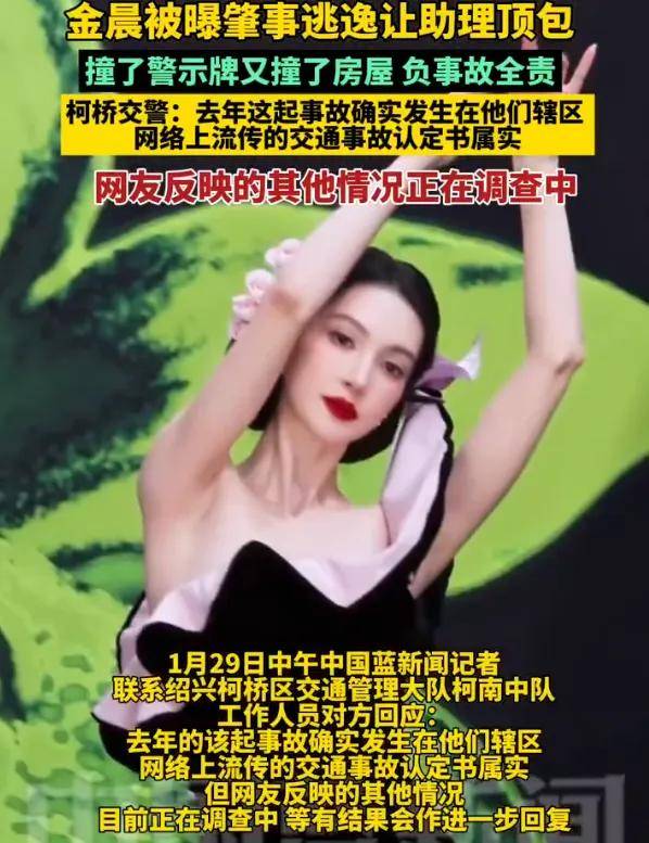 2026年1月29日,狗仔曝光金晨肇事逃逸找助理顶包的细节,还有疑似现场照曝光,现场照显示时间“3月16日”和车牌“沪F·E”都和狗仔爆料对上了。