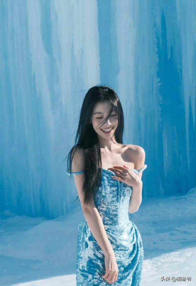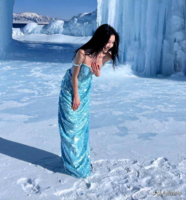 近日,新疆赛里木湖的冰瀑前,易梦玲穿着蓝色亮片吊带裙站在雪地里。风裹着零下20度的寒气往领口灌,她的耳朵尖冻得通红,却还要对着镜头笑出标准弧度。有游客拍下这一幕,配文&ldqu