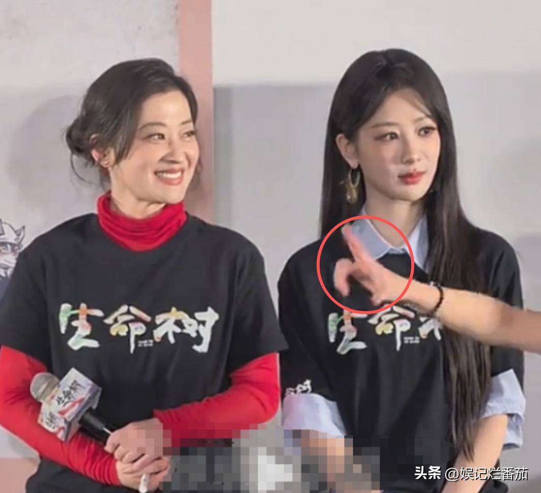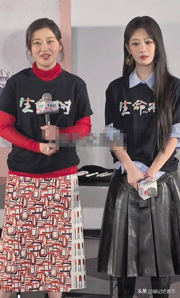 发布会上,作为主角、33岁杨紫的镜头很多,而跟50岁梅婷同框的镜头,也不少。