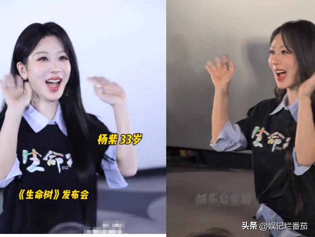 要说反差感强的状态,还是看《生命树》发布会上的杨紫。